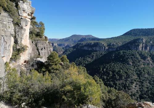 A la font comença la davallada per l’atractiu barranc de Vinarroig. Ara per camí, ara per pista, anem perdent ràpidament altura, primer pel marge esquerre del torrent i més enllà pel dret; en aquest, més bagueny, el gebre ens recorda que som en ple hivern, malgrat la bonança. Ens acostem a la Febró, però deixem el poble de costat i anem directament al fons de la vall (715 m).