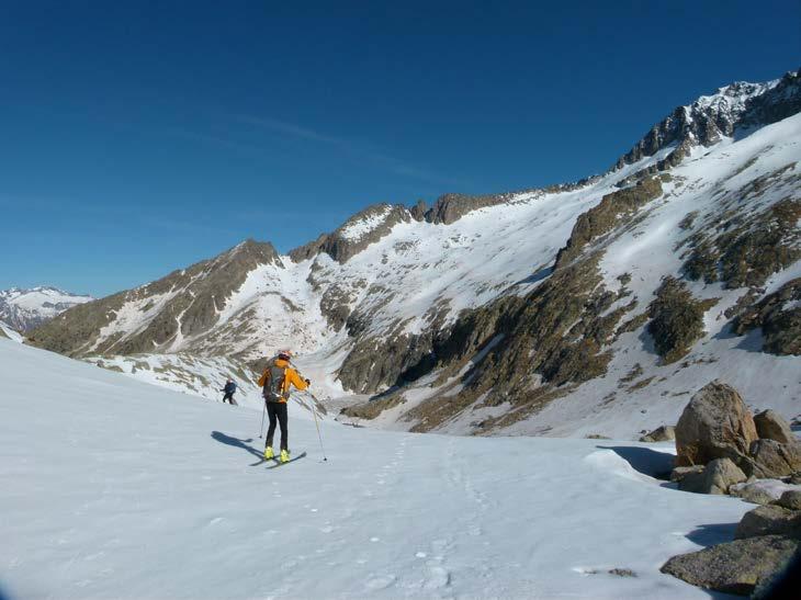 A primavera entrada és un bon lloc per fer travesses, ja que deixes el cotxe a 2200 m, la neu es troba abans del refugi, allò és una nevera. La travessa es pot fer en dos dies fent nit a la Renclusa, i es pot escurçar passant pel coll de Corones i / o baixant fent diagonal fins a sota del coll de Salenques estalviant la remuntada des de l'ibon de Barrancs. Tanmateix, es pot allargar pujant el Russell.•