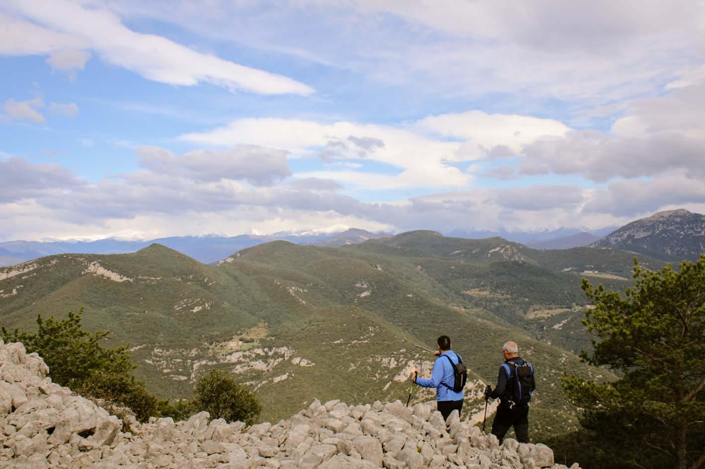 alhora parant a gaudir cada balconada. I és així, movent-nos com cabretes, que vam aconseguir arribar a dalt de tot. Ep, no tan de pressa, però perquè encara ens quedava un últim esforç fins al Treu Petit. Seguits de ben a prop d’una parella de voltors majestuosos, vam coronar el punt més alt de l’excursió: quin goig admirar i reconèixer tots els llocs per on hem passat els últims anys. I llavors sí, avall que fa baixada!