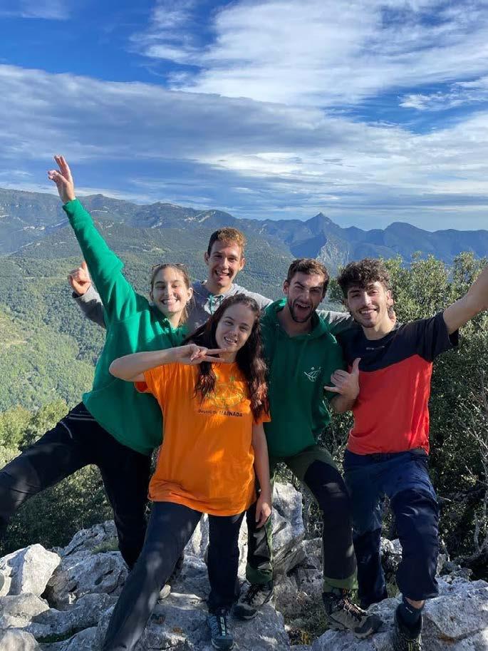 Després d’una llarga carretera vam arribar a dos quarts de nou a Basses de Monars per començar l’excursió. La primera pujada fins al primer cim, el Comanegra, la vam fer amb un obrir i tancar d’ulls, aquests Grans tenen molta energia! Sense aturar-nos, perquè encara quedava bastant, vam fer camí fins al Pic de les Bruixes. Els colors de tardor i el Canigó nevat al fons ens van deixar bocabadats mentre esmorzàvem dalt del segon cim. Un cop fet el mos ens esperava una gran baixada, entre converses i xino-xano, passant per sota del Sant Marc (i per algun camí que no era) vam arribar al balcó de la Garrotxa, Talaixà. Les ganes de jugar i fer cabrioles ens van fer dinar ràpid per poder tenir uns minuts abans de tornar-nos a posar en marxa. El joc del “contact” va ser el protagonista de la segona baixada fins a Sadernes. Sense aturar-nos vam poder passar una estona fent quatre grimpades i alguns moviments de “parckour” per sota del sector d’escalada del Castell Sespasa Esquerra, pel que semblava l’energia encara no s’havia acabat. Així doncs, entre riures i algun esbufec vam acabar arribant ben puntuals al pàrquing de Sadernes. Els monitors i monitores ja tenim ganes de tornat a veure-us!