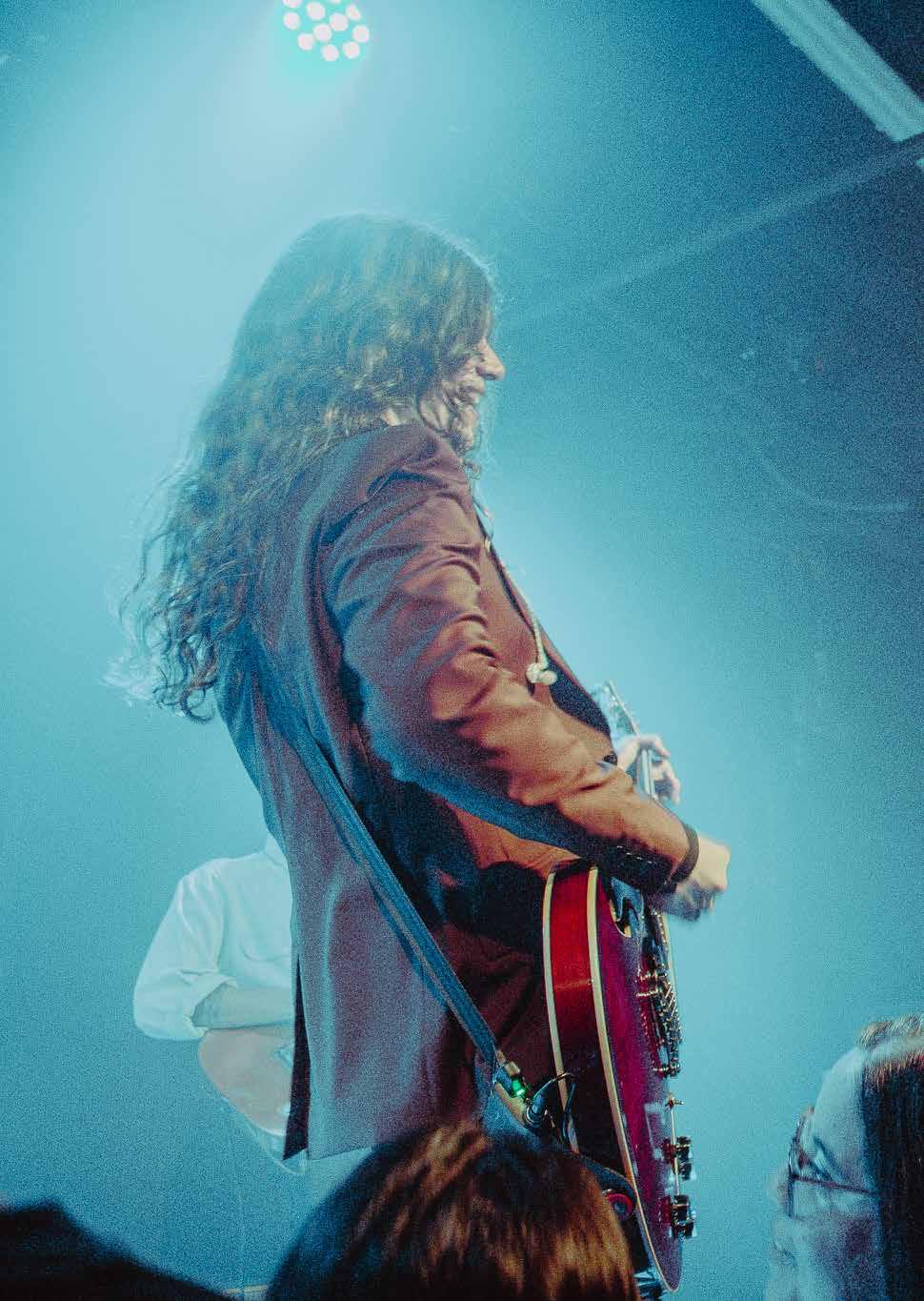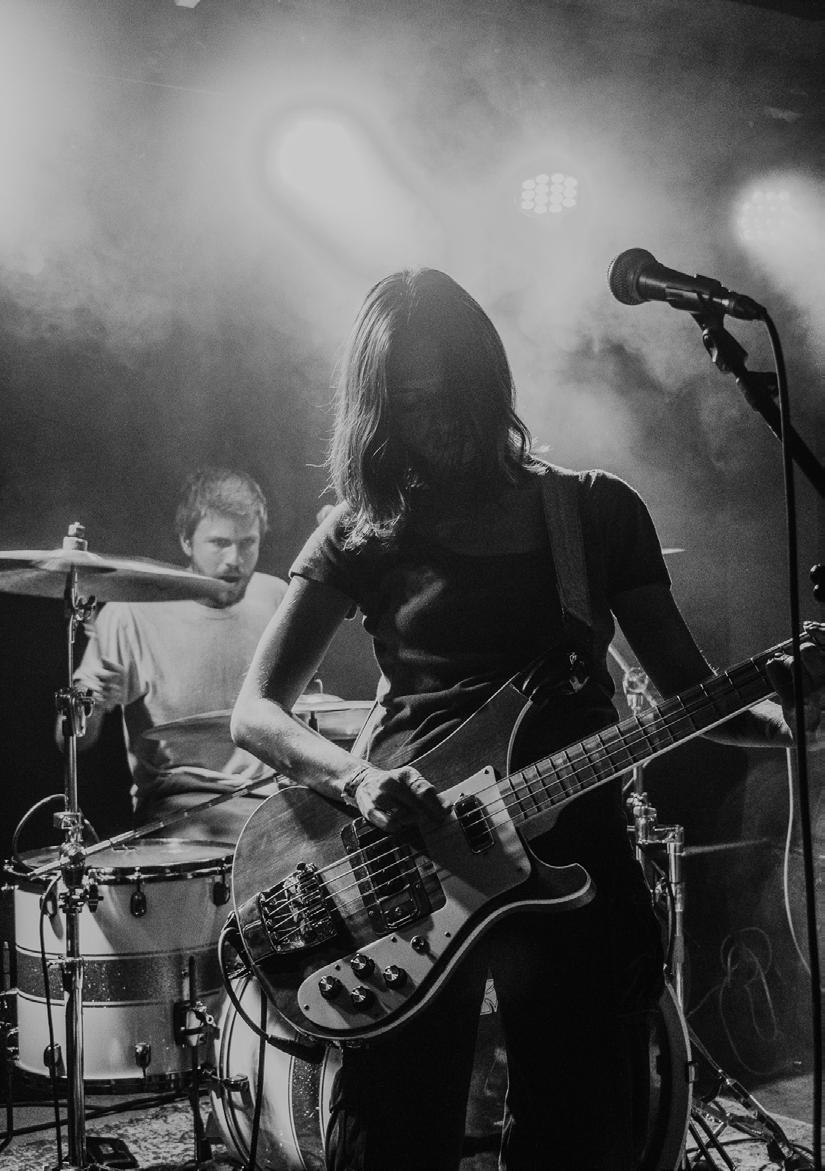 when artists decide to reveal their music to us before they put it out. The band seemed to enjoy playing these new tracks more as well, experimenting and figuring out their sounds while playing, something I’m sure any music lover can appreciate. The rest of their set, thankfully without any more technical difficulties, went smoothly and, dare I say, quite beautifully. It felt as if their massive sound kept on expanding, filling every corner of the room. As we arrived at the last two songs of the performance, “Your New Family Looks Better On An Office Desk” and “Follow”, both from their 2021 album “SIN”, I felt as if underwater. Overall, Stay In Nothing’s set at Willemeen was a celebration of sonic artistry, taking their recorded work to the stage with velvety softness while packing quite the punch. An absolute pleasure, begging for bigger stages.