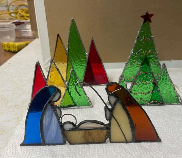 The stained glass class originated as a Community Life outreach meeting on Wednesday morning in the room next to Meals on Wheels. Inspiration for the stained glass windows in Bittinger Hall were the results of a challenge project from the 2015 stained glass group. This year’s project for the Art Market are Christmas ornaments and decorations with proceeds benefiting Meals on Wheels.