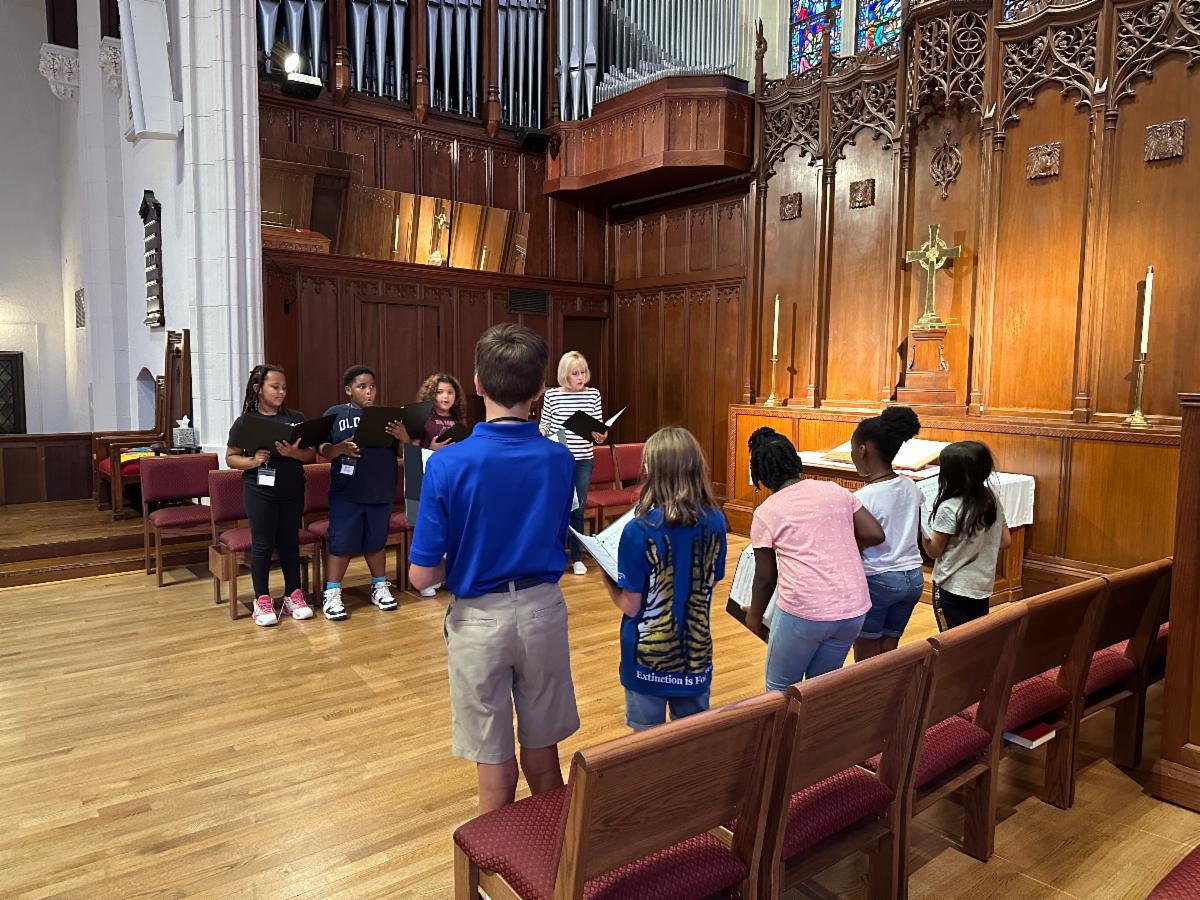 In particular, Choristers learn the importance of giving and receiving responsible constructive criticism. We work to build a spirit of cooperation in rehearsals by singing in duets, where two students sing a phrase of music while others listen closely. Those who listened then provide one piece of feedback that would help the duet improve their performance while also encouraging them with the aspects of their performance that worked well. This skill is quite new to our younger students and requires a bit of practice in itself. By the end though, Choristers develop a sense of responsibility for their singing and a sense of community by encouraging others while still remaining invested in improvement. And they certainly have improved both in singing and in community spirit!