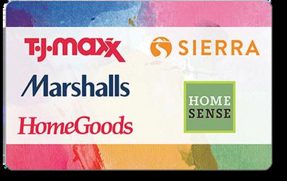 T J Maxx, Marshalls, HomeGoods, Homesense, and Sierra are not affiliated with RPG Card Services and are not sponsors or co-sponsors with this promotion Use of T J Maxx, Marshalls, HomeGoods, Homesense, and Sierra names, logos, images, or trademarks require written approval from TJX Incentive Sales, Inc
