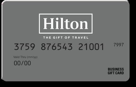 Reward your team with the perfect blend of luxury and utility: Hilton Business Gift Cards. This card offers an exceptional way to appreciate your employees, granting access to Hilton's world-renowned hospitality. Accepted at all hotels and resorts within the Hilton portfolio. Available in denominations from $25 - $1,000. Available in physical cards only. Click here to learn more.