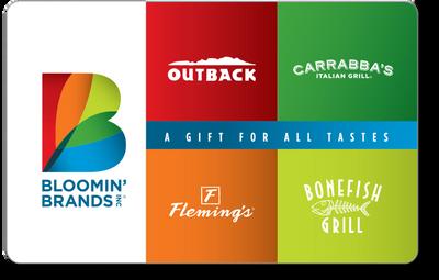 Boost employee morale with versatile Bloomin' Brands Gift Cards. Unlock a range of culinary delights from Outback Steakhouse, Carrabba's, Bonefish Grill, to Fleming’s, perfect for celebrating team achievements. Available in denominations from $5 - $500. Both physical and digital cards available. Click here to learn more.