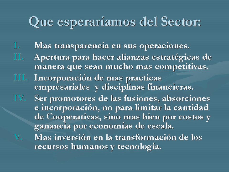 En relación a qué se conoce sobre el sector, todos conocemos la importancia que el sector cooperativo ha jugado en la economía nacional. Las cooperativas de la reforma agraria, las cooperativas de ahorro y préstamo, las cooperativas de vivienda, las cooperativas de servicios múltiples, las cooperativas agroforestales. Pero si hay algo que tenemos que reconocer para saber qué tratamiento le vamos a dar, es lo que ha pasado con el sistema cooperativo en los últimos 15 años. Y tenemos que partir de la base de que el modelo neoliberal ha golpeado fuertemente al sistema cooperativo al descuidarlo completamente, al no darle ningún tipo de apoyo como en algún momento se le prestó anteriormente, y bajo condiciones muy difíciles, bajo condiciones sumamente duras, el sistema cooperativo se ha podido mantener
