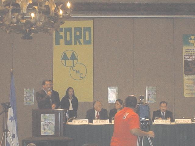 En nombre de las 2,000 cooperativas que existen legalmente registradas en el Instituto Hondureño de Cooperativas, IHDECOOP, les damos muchísimas gracias a quienes nos han acompañado, a la dirigencia nacional, a ustedes presidenciables, y lamentamos mucho que algunos aspirantes no hayan tomado en serio este acontecimiento y asumir el compromiso con gran parte de la sociedad hondureña.