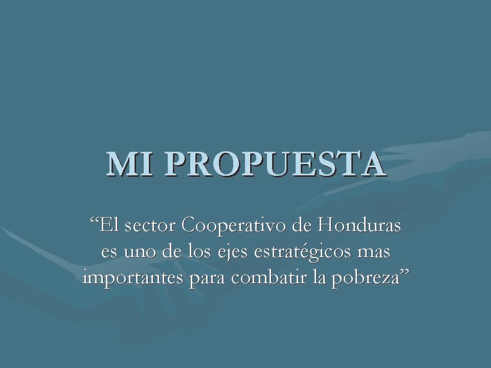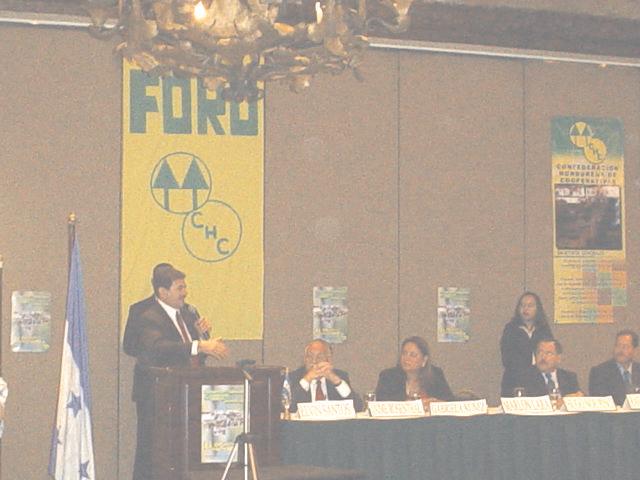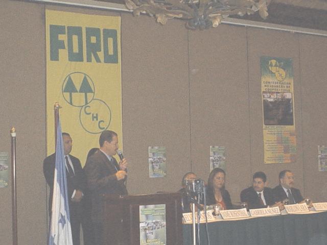 Reconociendo que es un eje estratégico para combatir la pobreza en Honduras, estamos proponiendo el fortalecimiento del sistema de cooperativas... proponemos el apoyo a través de la asistencia técnica con programas que mejoren las capacidades gerenciales y de negocios, para hacer frente a los retos por venir como el TLC. Estamos proponiendo que los subsectores, el subsector de las cooperativas de viviendas, forestal, de transporte y de otras, participen activamente en las discusiones de tipo gubernamental.