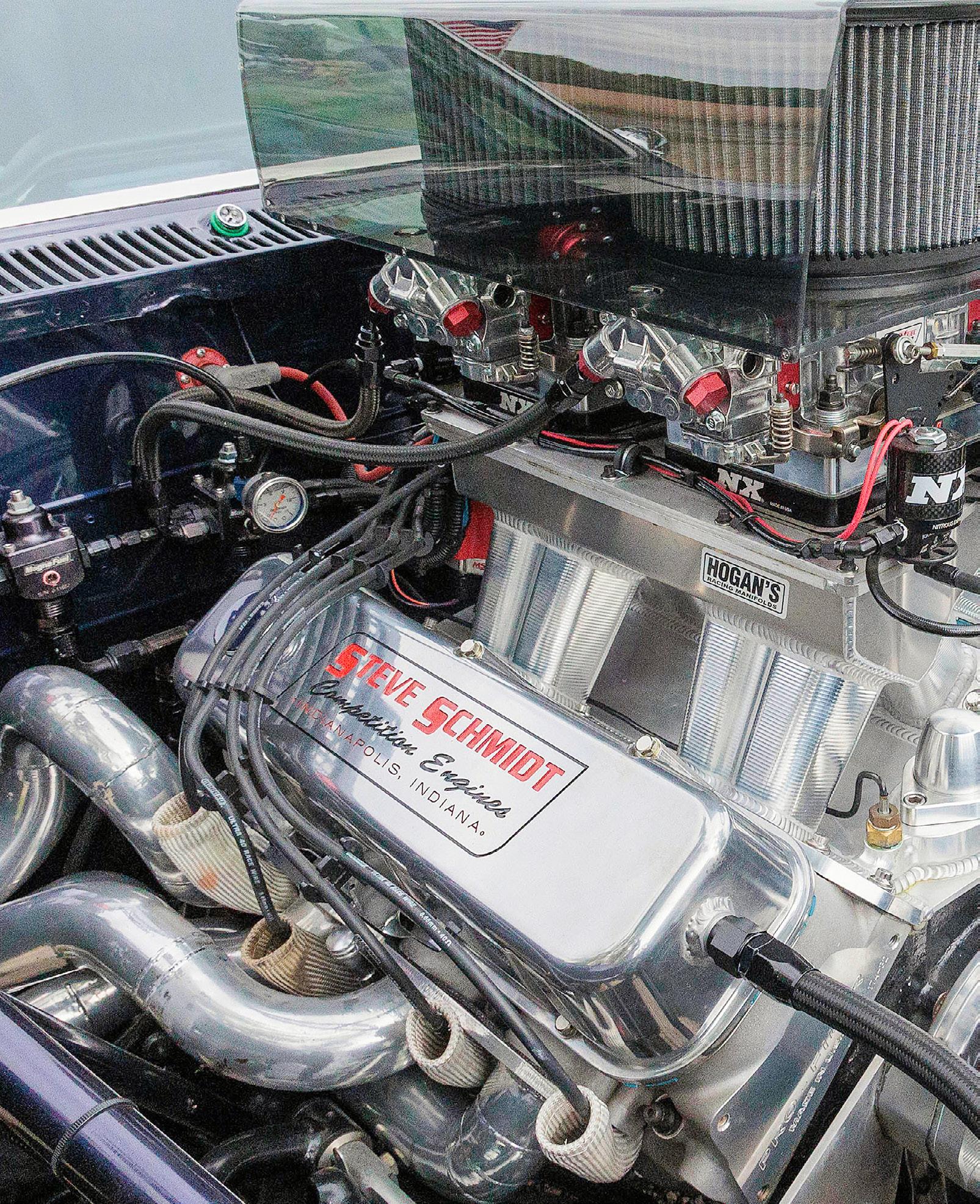 Two Pro Systems Dominator style 1050 custom nitrous carbs top off the SBF.