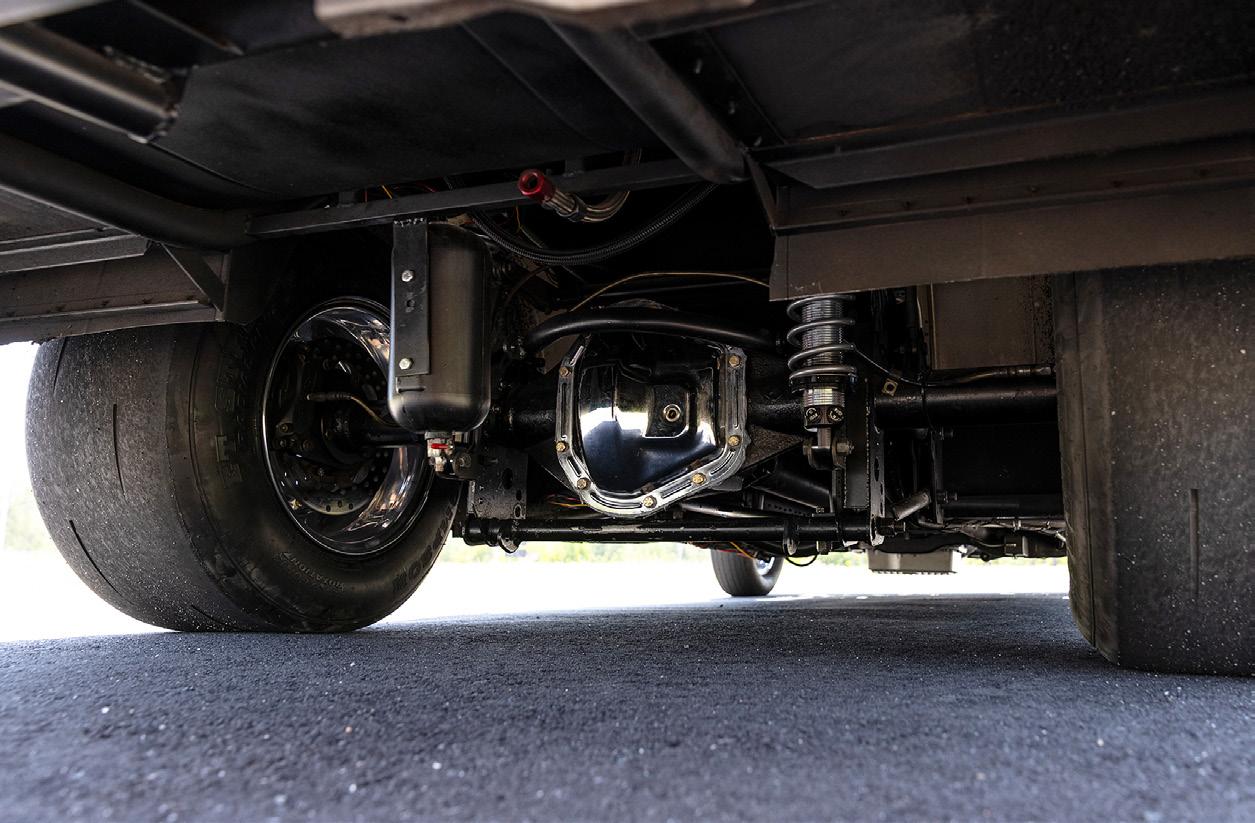 The finished 25.2 chassis features Afterworks shocks tuned by Ron Galbreath and the stock-style, rear suspension supports a Hammer Concepts & Designs fabricated 9-inch rearend packed with 4.10 gears.