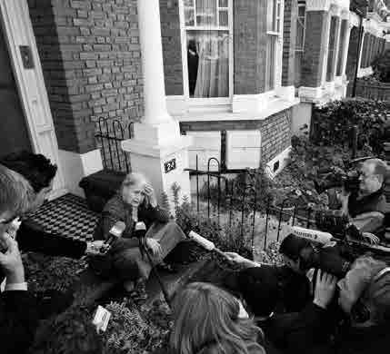 Lessing, recibiendo a la prensa después de ser notificada de la obtención del Nobel.