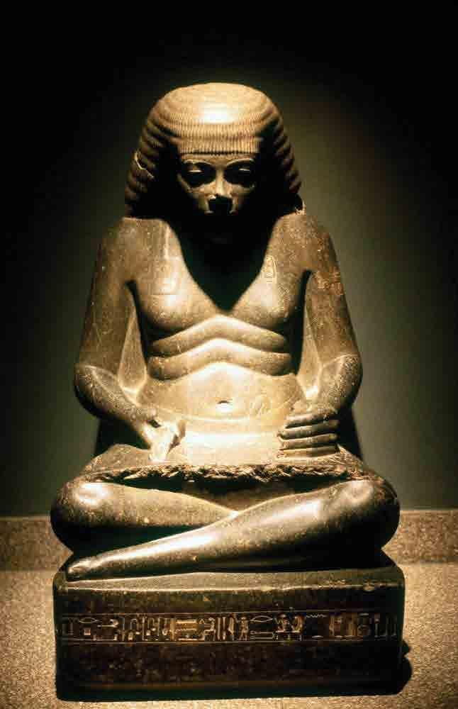 Y sin embargo un escritor, al principio, era un burócrata de arcaicas oficinas. La primera imagen conocida de alguien escribiendo es un escriba: un pelado egipcio en flor de loto que toma notas de algo que alguien —demasiado importante como para compartir con él la escena— le dicta. Durante mucho tiempo, la palabra scriptor se aplicó sobre todo a esos copistas —griegos, romanos, medievales— que inscribían las palabras de otros. (Y los franceses todavía dicen écrivain, que se parece demasiado a “escribano”, el sinónimo sudaca del español “notario”).