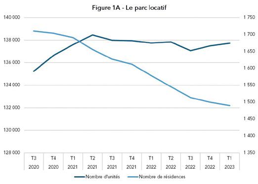 Les données du ministère de la Santé et des Services sociaux (MSSS) sur les résidences privées pour aînés font comprendre que l’ensemble du parc locatif, mesuré en nombre d’unités d’hébergement (chambres et logements), aurait cru d’environ 1,8 % comptés entre le troisième trimestre de 2020 et le premier trimestre de 2023, soit une période de près de trois ans. Sans surprise, le nombre d’établissements inscrits au registre gouvernemental aurait chuté de près de 13 %, passant de 1 710 à l’automne de 2020 à 1 490 au printemps de 2023. Si le contingent d’établissements diminue, l’offre de logement se concentre au sein d’un plus petit nombre d’exploitants. Parallèlement, la construction de nouvelles résidences a diminué pendant cette période, notamment à cause de la hausse des coûts de construction et des taux d’intérêt.
