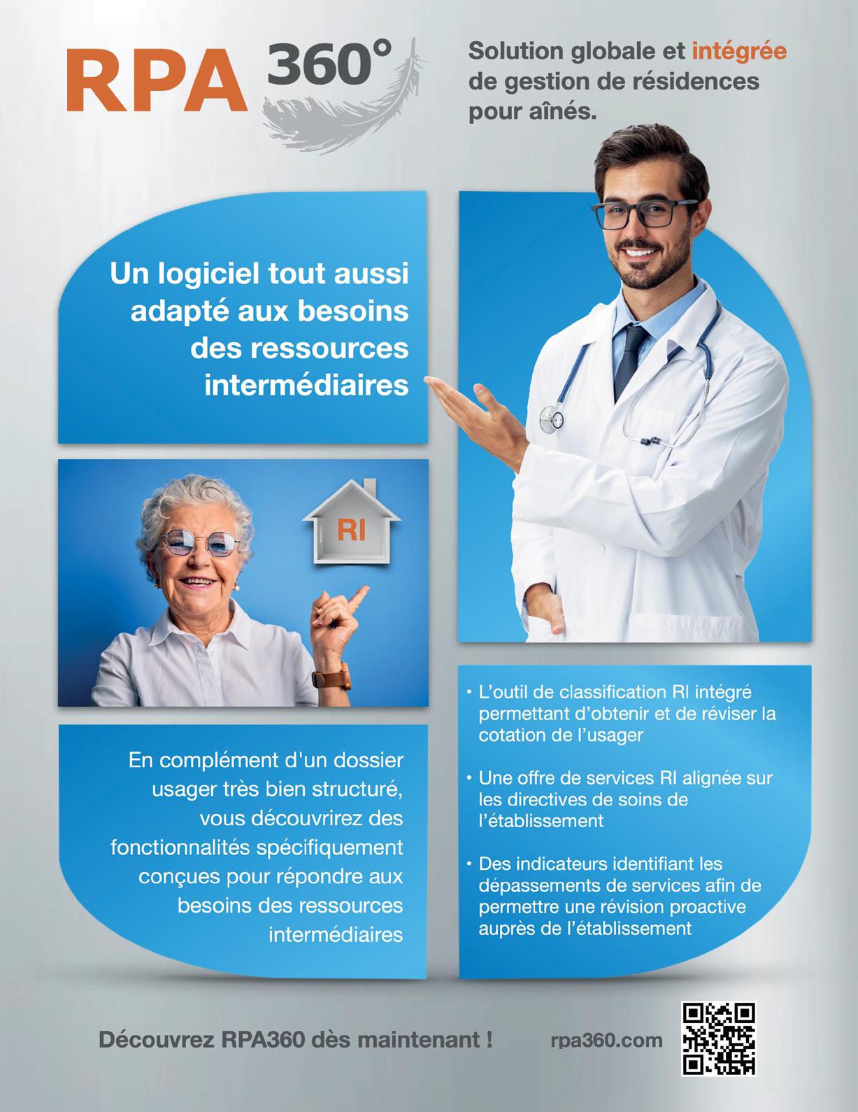 LE MAGAZINE DES RÉSIDENCES POUR AÎNÉS PRINTEMPS 2024 PIGNON SUR L’ACTUALITÉ Achats de services aux RPA ON AVANCE ENFIN… ZONE GESTION MISSION D’ÉTUDE AUX PAYS-BAS : LES SOINS DE LONGUE DURÉE, UNE RESPONSABILITÉ QUI APPARTIENT À TOUS ! DOSSIER SPÉCIAL INNOVATION L’IA ET LA TECHNOLOGIE AU SERVICE DE LA SANTÉ DES AÎNÉS