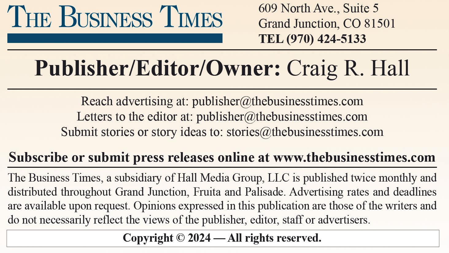 The Business Times 609 North Ave., Suite 5 Grand Junction, CO 81501 (970) 424-5133 www.thebusinesstimes.com