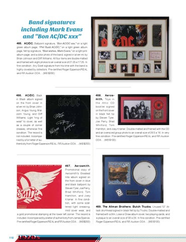 Band signatures including Mark Evans and “Bon AC/DC xxx” 465. AC/DC. Ballpoint signature, “Bon AC/DC xxx,” on a light
