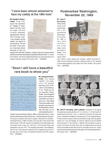 Postmarked Washington, November 22, 1963 87. John F. K e n n e d y.
