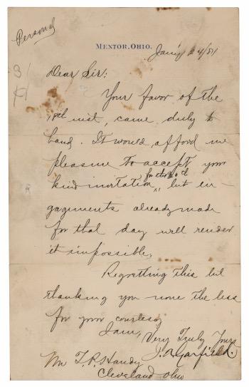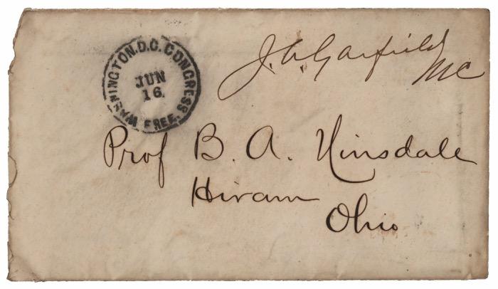 Postmarked at Charlotte, VA, November 2, [no year]. Archivally corner-mounted, matted, and framed with an engraved portrait (featuring a facsimile signature) to an overall size of 10.25 x 17. In fine condition.