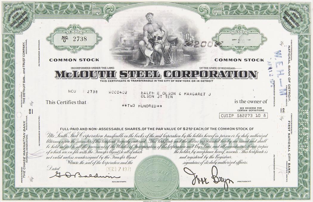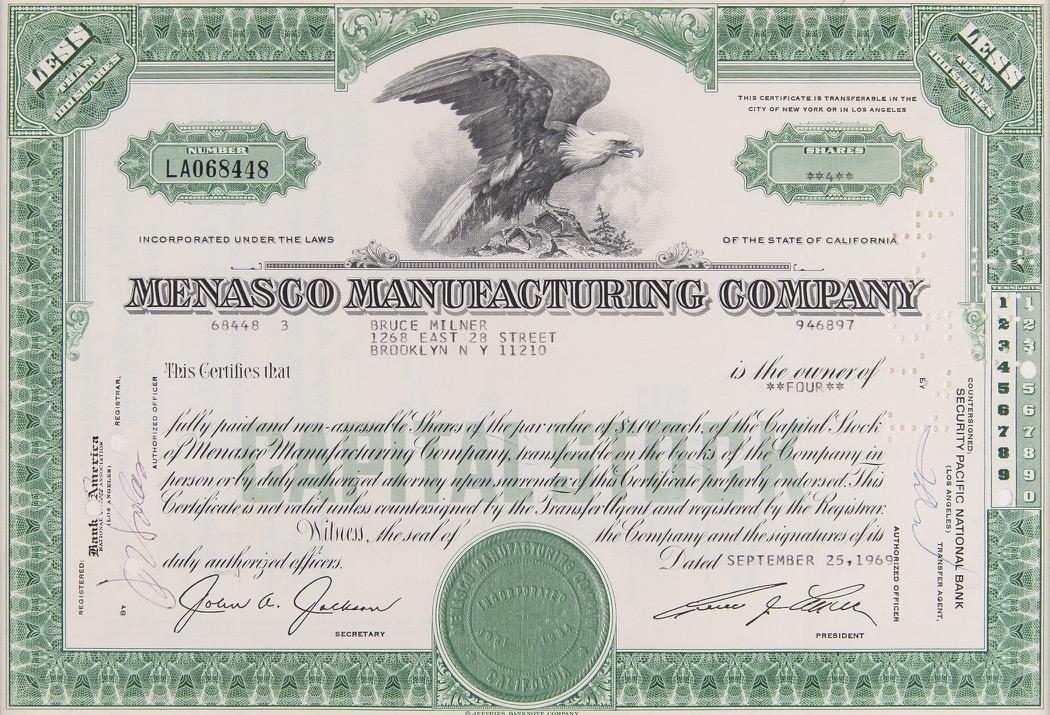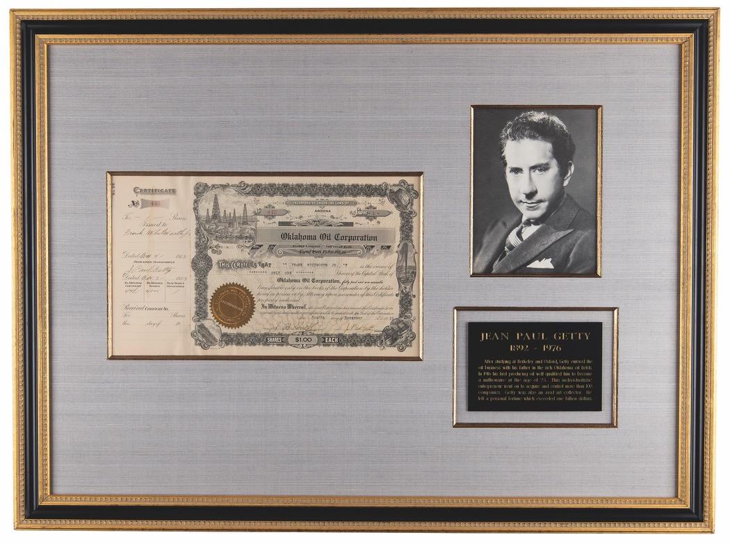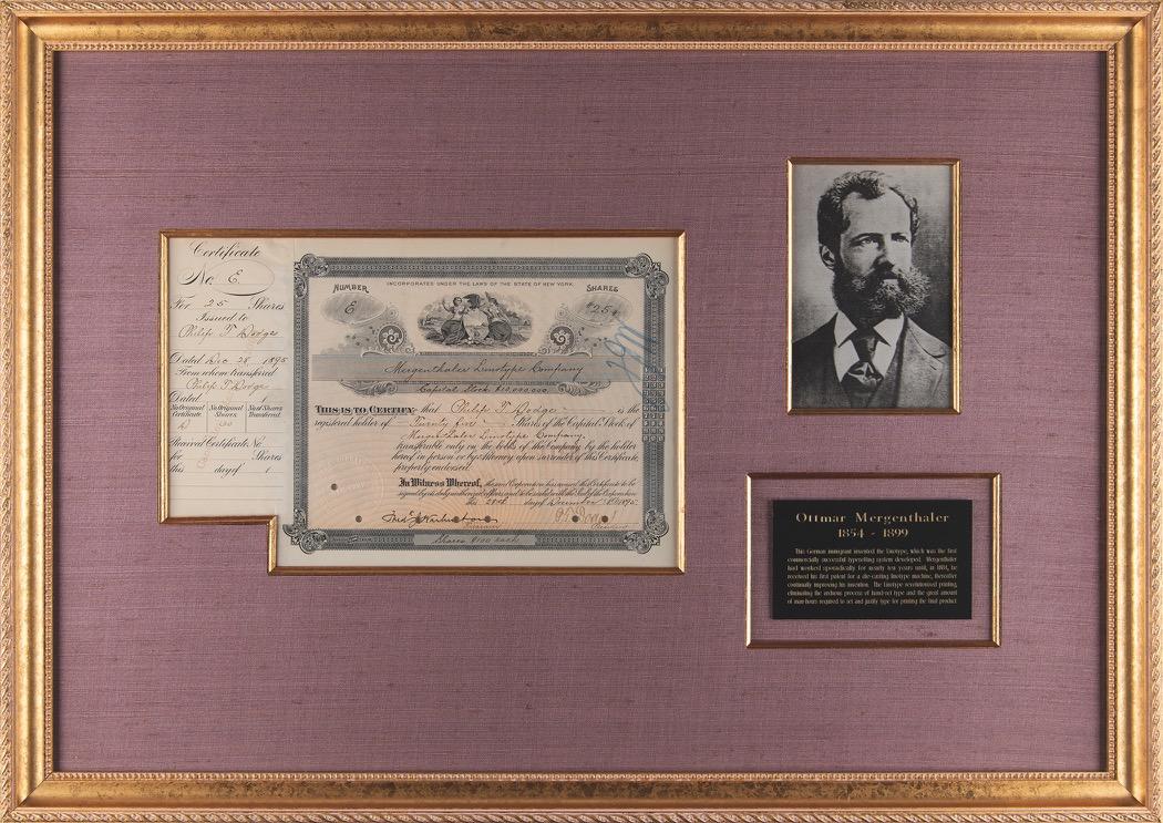 Certificate of Auction, Certificate of Authenticity and Goods Acquired: