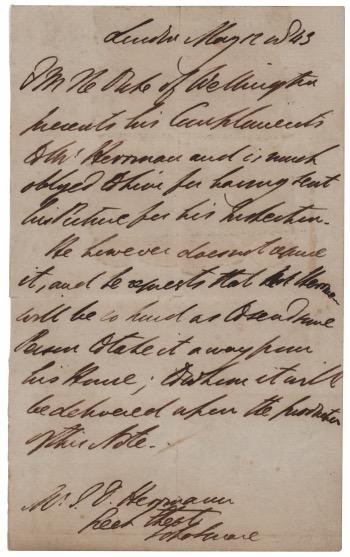 5. James Monroe Autograph Letter Signed as President. ALS as president signed “Jas. Monroe,” one page, 7.5 x 6, April 25, 1817. Handwritten letter addressed from Washington, in part: “My flour from London has been order’d to Alex’a, and an instruction given to Mr. Vasse, to pay this…If you will be so kind as to arrange…I will see that it is paid next month.” Professionally invalid into a slightly larger sheet and in fine condition. Starting Bid $200