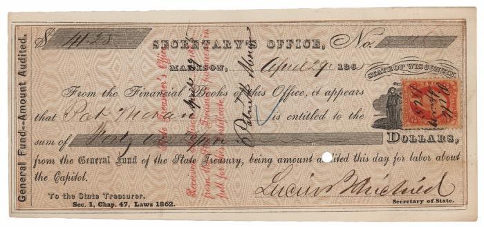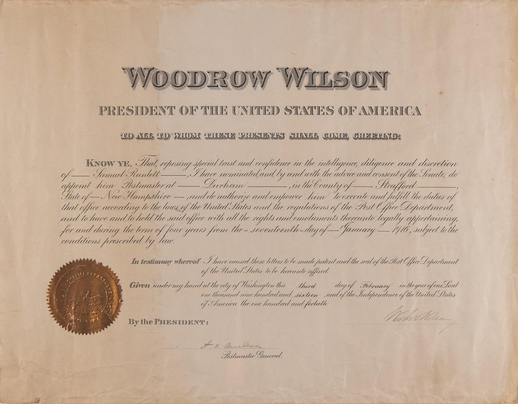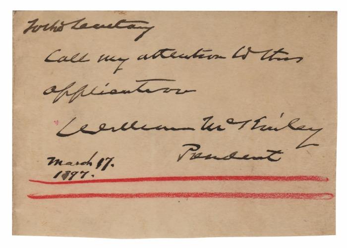 Signed as President (1861). Partly-printed vellum DS as president, one page, 13.75 x 17.5, August 16, 1861. President Lincoln appoints Sartell Prentice as “First Lieutenant in the Twelfth Regiment of Infantry.” Signed at the conclusion by Abraham Lincoln and countersigned by Secretary of War Simon Cameron. The original blue seal remains affixed to the upper left. In very good condition, with overall soiling, complete silking to the reverse, and the handwritten portions of the document are very difficult to read; Lincoln’s and Cameron’s signatures are light, but entirely legible. Sartell Prentice (1837-1905) was commissioned as a First Lieutenant in the Twelfth Infantry of the U.S. Army by President Abraham Lincoln on May 14, 1861. Prentice was later promoted to Captain and Brevet Major and he was recognized for bravery in the bloody 1864 Battle of the Wilderness in Virginia. He resigned from the military in 1865 due to ill health. Starting Bid $1000