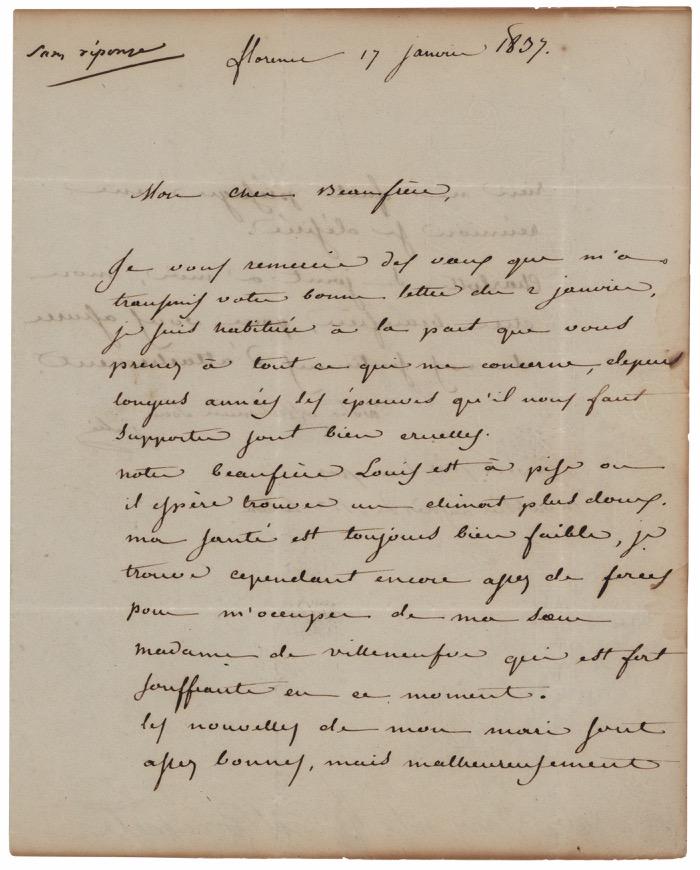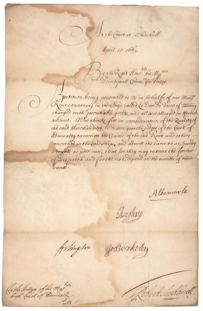 restored to near fine condition, with toning, light foxing and staining, and professional repairs to two areas of paper loss (which affect none of the handwriting).