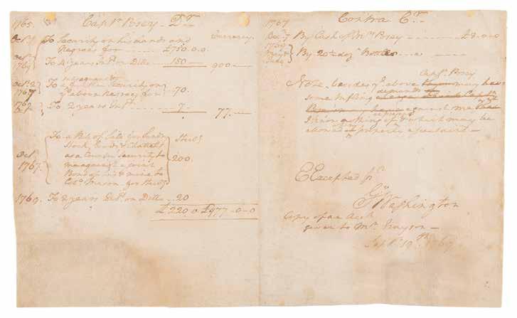 Captain John Posey was George Washington’s next-door neighbor at Mount Vernon, and the two formed a friendship. However, Posey was a heavy drinker and a failure in business, constantly falling behind in his debts and frequently turning to Washington for loans. Some of their several transactions— which often included slaves as collateral—are recorded here. Capt. John Posey was never financially solvent enough to make good on his obligations to Washington, and his account with the future president was settled by the forced sale of property in October 1769—just weeks after Washington penned the present document. A fascinating inside look at Washington’s business dealings and his participation in the heinous institution of slavery. Starting Bid $5000