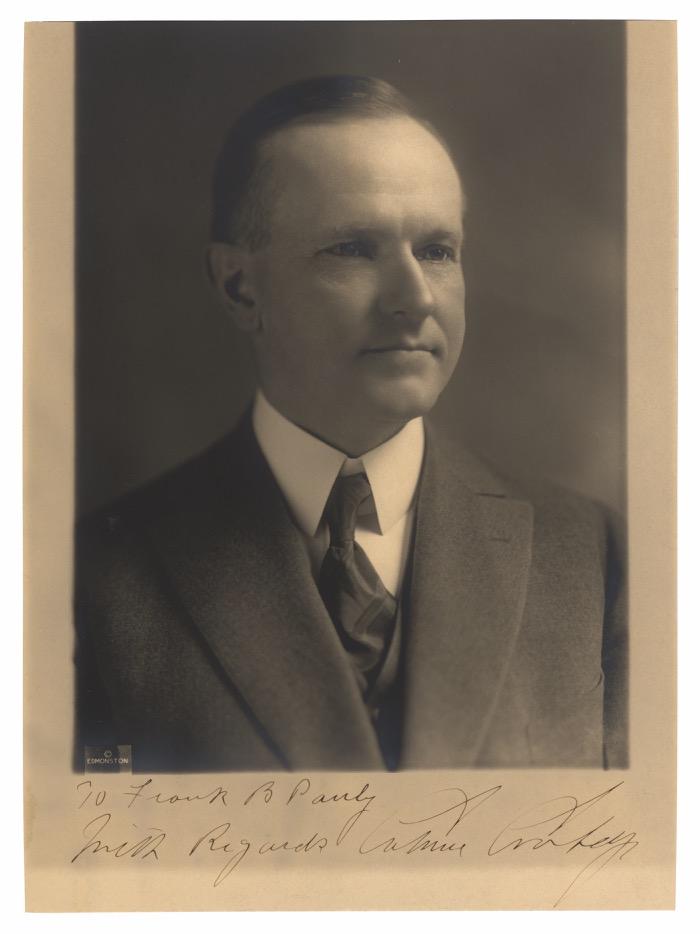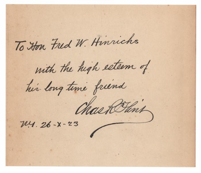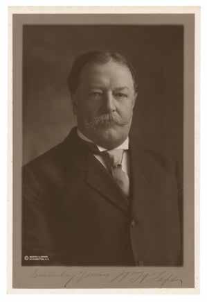 26. William H. Taft Signed Photograph. Vintage mattefinish 6.75 x 10.25 Harris & Ewing portrait of Taft in a suit jacket and tie, signed and inscribed in fountain pen, Sincerely yours, “William H. Taft.” Affixed to a slightly larger mount to an overall size of 7.25 x 10.75. In fine condition. Starting Bid $200