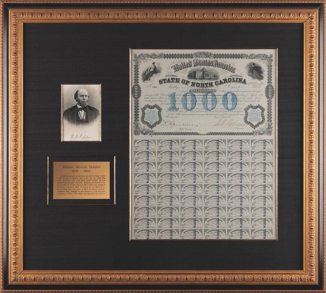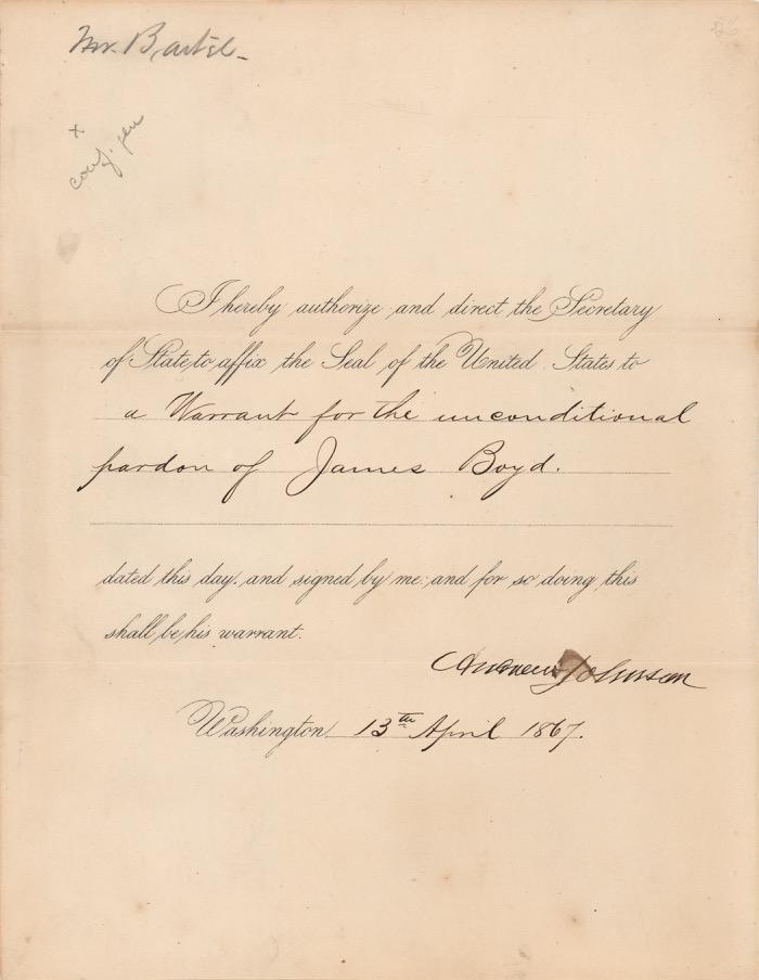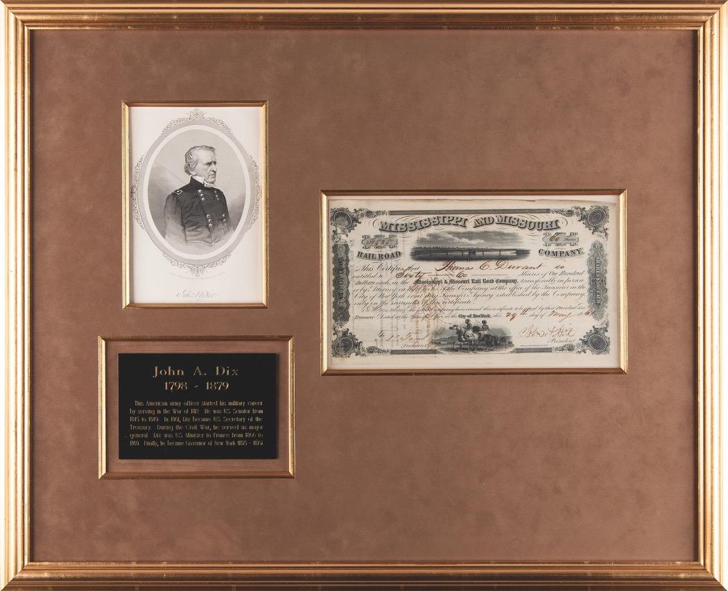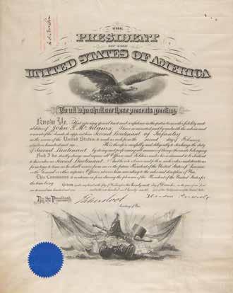 Signed as President. Partly-printed DS as president, one page, 17 x 14, March 19, 1867. President Johnson appoints Robert R. Congdon as “Collector of the Customs for the District of Georgetown in the State of South Carolina.” Boldly signed at the conclusion in ink by President Andrew Johnson, and countersigned by Secretary of the Treasury Hugh McCulloch. Affixed to a larger mount and in very good to fine condition, with light toning from prior display. This document dates to just days after Congress overrode Johnson’s veto to pass the Tenure of Office Act, which would play a pivotal role in his impeachment the following year. Starting Bid $200