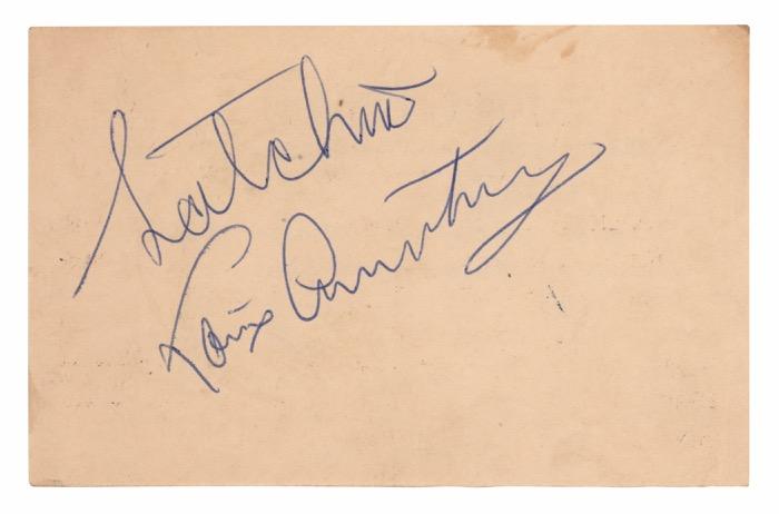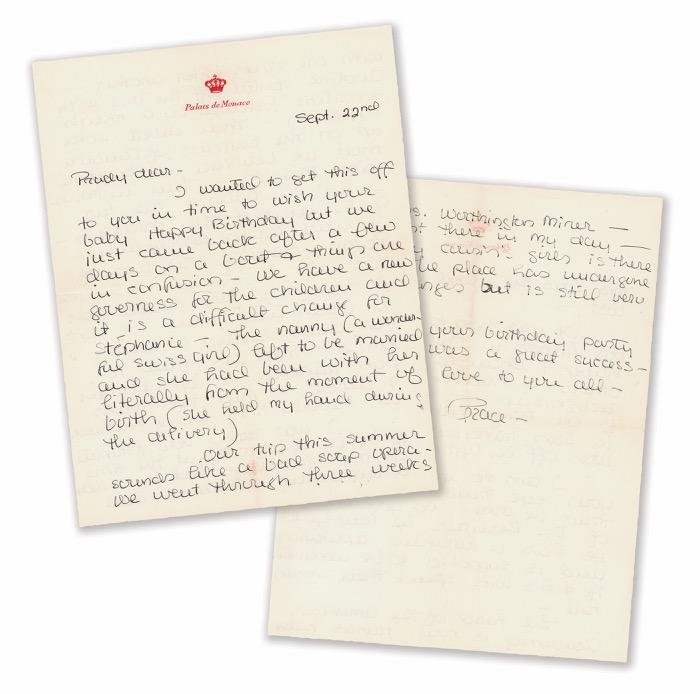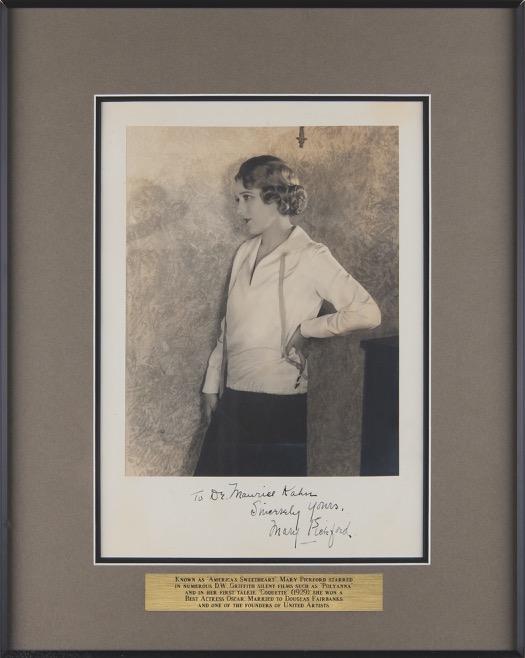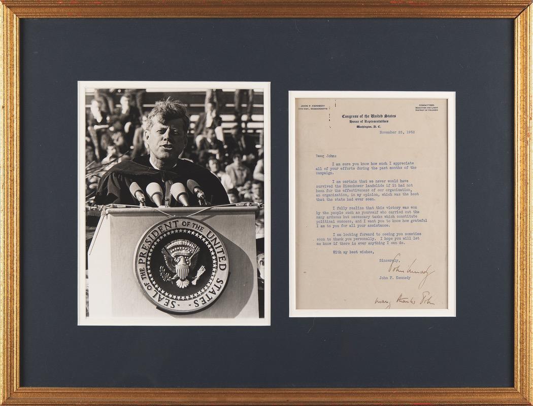 30. Jacqueline Kennedy Autograph Letter Signed on John-John’s Medical Checkups. ALS signed “Jacqueline Kennedy Onassis,” one page, 4 x 5.75, no date. Handwritten letter to Mr. Reed, in full: “Could I please get John out at school Monday May 7 — at 1:45, to go to the eye doctor — Tuesday at 2:30 to go to the allergy doctor. Sorry — but it’s the pollen season which always brings complications. Thank you so much.” Archivally matted and framed with a wonderful photo of Jackie and JFK Jr. to an overall size of 17.75 x 13.25. In fine condition. Starting Bid $200