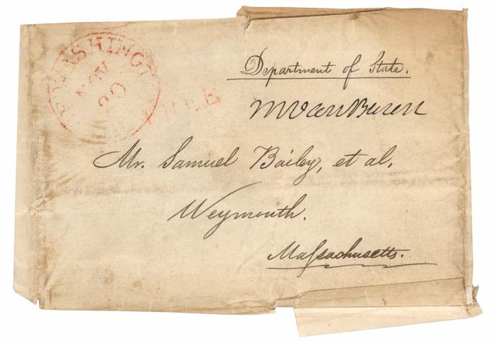 In his letter, President Van Buren evidently communicated news on the Amistad trial, a case resulting from the rebellion of Africans on board the Spanish schooner La Amistad in 1839. In early 1840, a federal district court found that the transport of the kidnapped Africans across the Atlantic Ocean on the Portuguese slave ship Tecora was in violation of US laws against international slave trade, and as illegally kidnapped people they thus had the right to use force to secure their freedom. The ruling was upheld on appeal in the circuit court, and ultimately upheld again by the U.S. Supreme Court in 1841. Isabella II was one of several claimants to ownership of the liberated slaves, and even after resolution of the case, the Spanish government continued to press the United States for compensation. Starting Bid $200