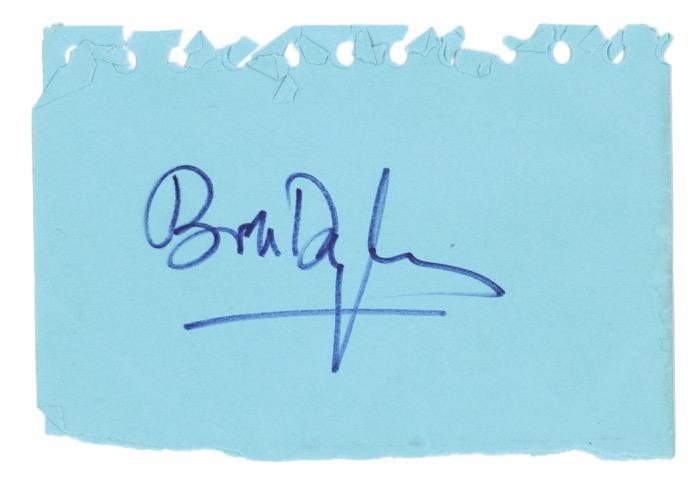 SALE OF AUTOGRAPHED COLLECTIBLES: AS REQUIRED BY LAW, A DEALER WHO SELLS TO A CONSUMER ANY COLLECTIBLE DESCRIBED AS BEING AUTOGRAPHED MUST PROVIDE A WRITTEN EXPRESS WARRANTY AT THE TIME OF SALE. THIS DEALER MAY BE SURETY BONDED OR OTHERWISE INSURED TO ENSURE THE AUTHENTICITY OF ANY AUTOGRAPHED COLLECTIBLE SOLD BY THIS DEALER.