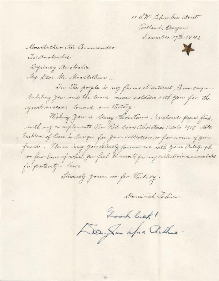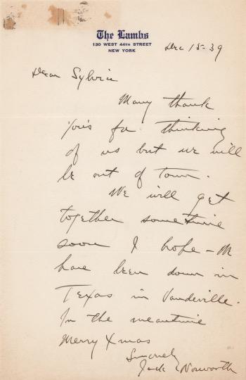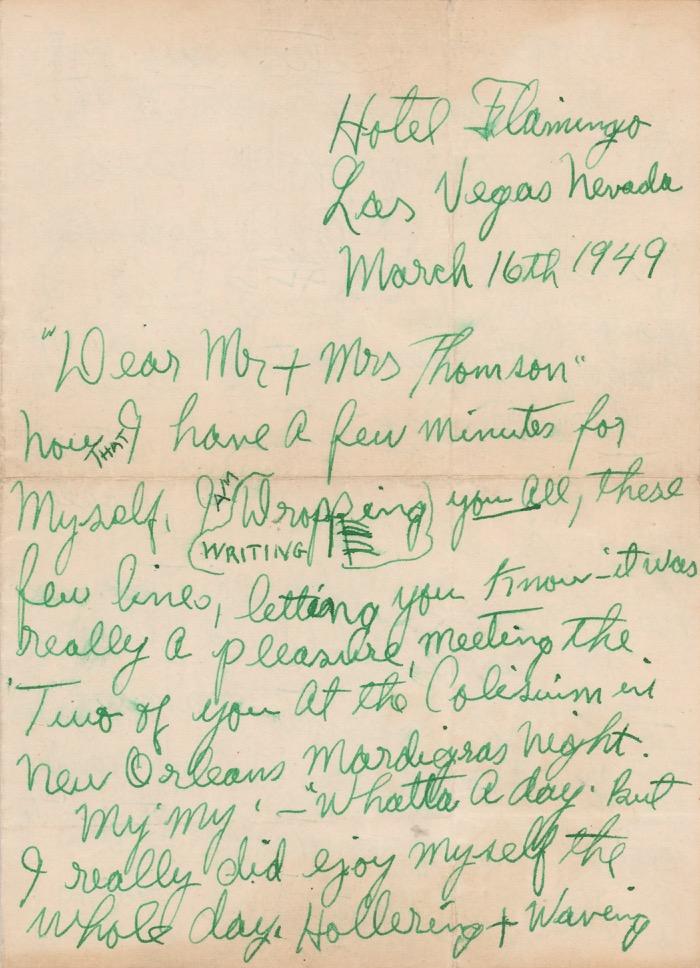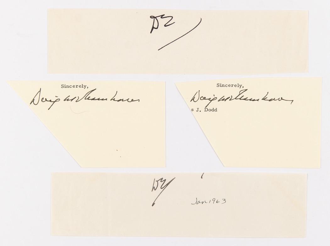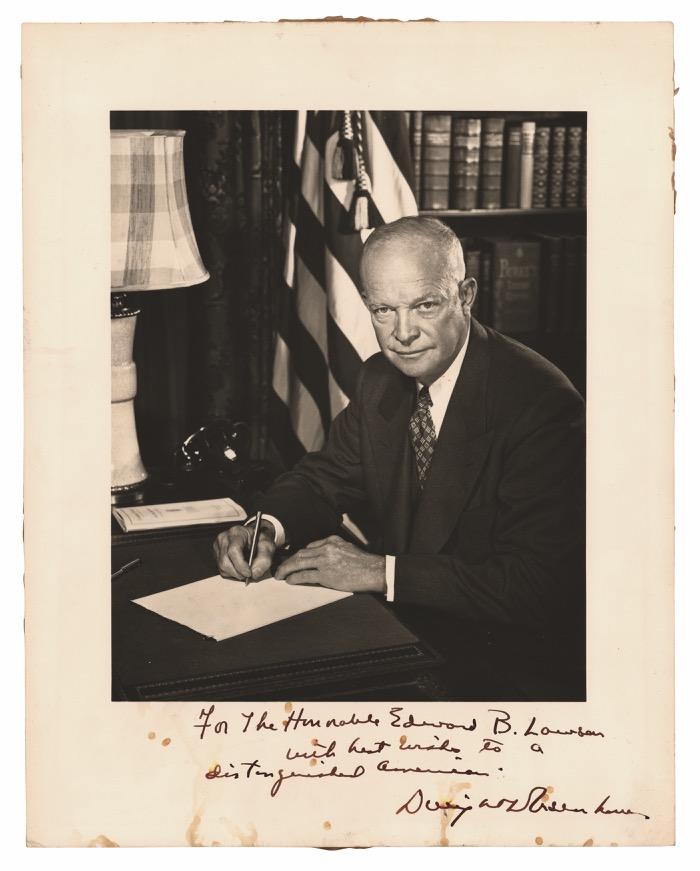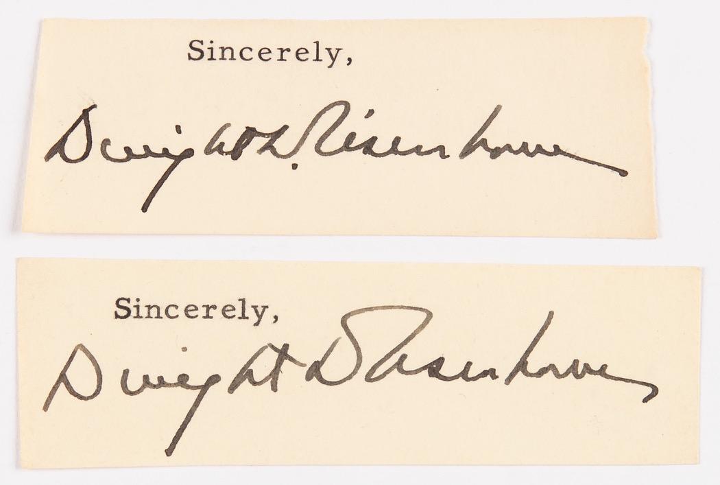29. Dwight D. Eisenhower Autograph Letter Signed. World War II–dated ALS signed “Ike,” three pages, 6 x 9, August 16, [1942]. Handwritten letter to his wife Mamie, in full: “Sunday again! The days race by so rapidly that I cannot keep track. But I didn’t come to work this a.m. until 10:00, so I’ve already had my holiday! There’s been a hiatus in our mail receipts. Nothing from you this week—but Butch has had nothing either, so I’m sure it is just been connections somewhere. I hear a number of people saying they’ve had no recent mail. I’m not so busy today as usual. Have one more big conference (at 3:30) then the rest of the day should be quiet. Of course, we can always have something happen that will throw us into a storm!” In fine condition. Starting Bid $200