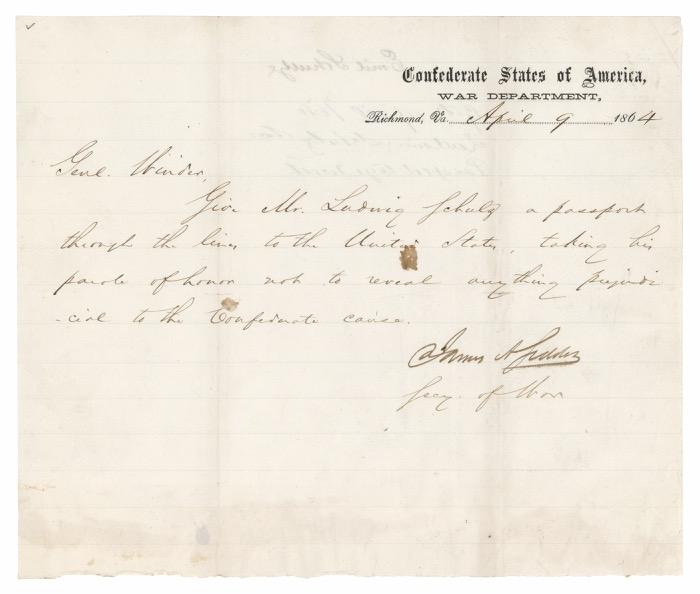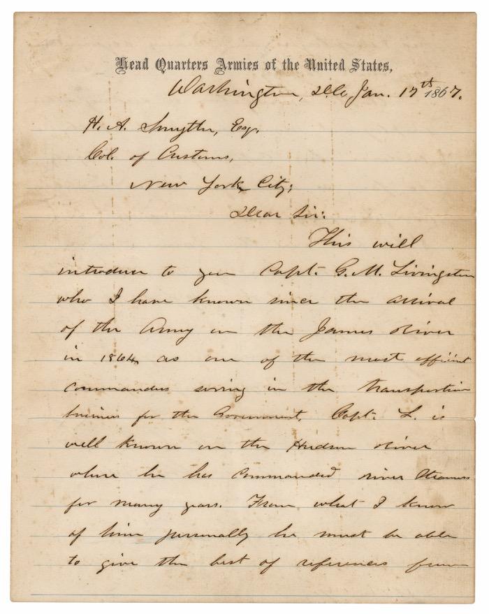 In 1865, Grant informs “the Com. on Conduct of the War” of his impending arrival in Washington