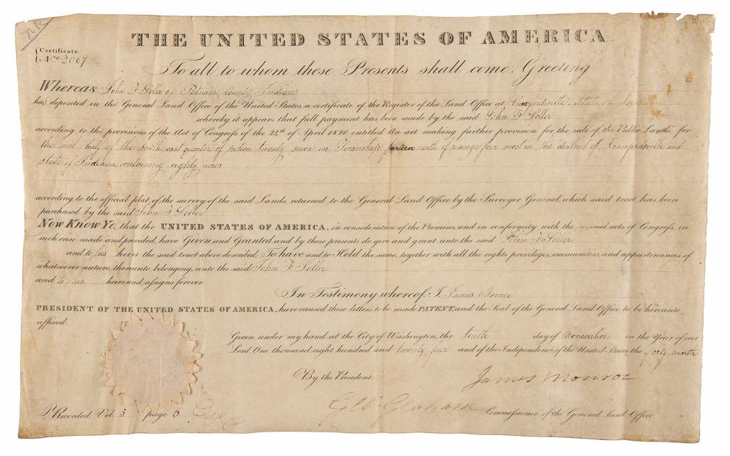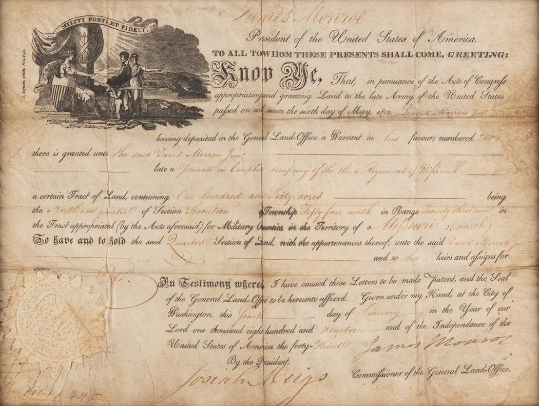 6. James Madison and James Monroe Document Signed as President and Secretary of State.