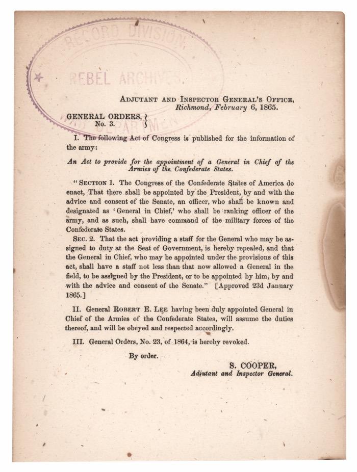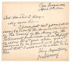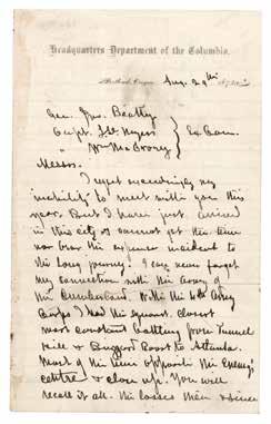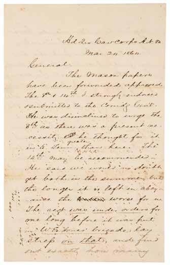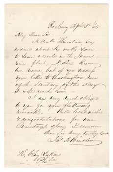 The Congressional Joint Committee on the Conduct of the War investigated and provided oversight of President Abraham Lincoln’s command of the Union Army in the Civil War. General Grant asks Henry Halleck to inform the committee, and his chief advocate, Congressman Elihu B. Washburne, of his impending arrival in the nation’s capital. On February 11th, Grant appeared before the committee in relation to Benjamin Butler’s earlier failed effort against Fort Fisher and the question of prisoner exchanges with the Confederates. Starting Bid $200