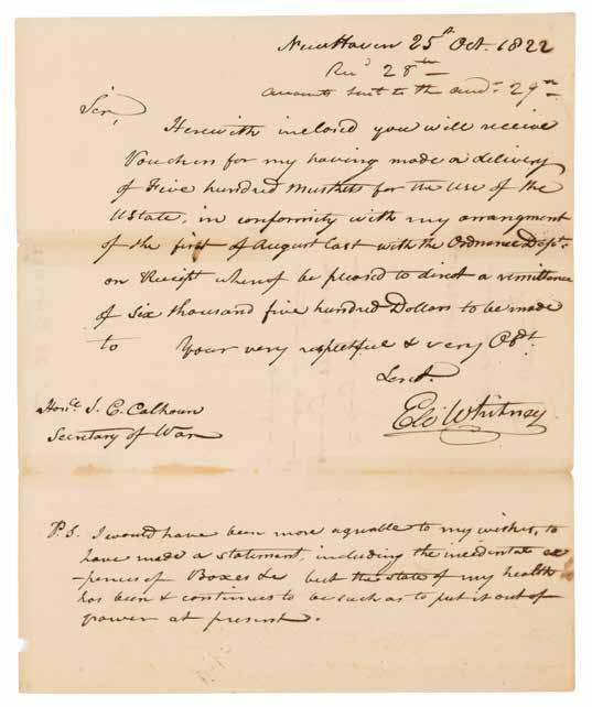 1. George Washington Autograph Letter Signed to Architect of the Capitol William Thornton. ALS signed “Go: Washington,” one page, 7.25 x 9, August 28, 1799. Handwritten letter to William Thornton, the architect who designed the United States Capitol. In full: “I would thank you for requesting Mr. Blagden to give me as early notice of the time, and amount, of his next call upon me, as he can, that I may prepare accordingly.” In fine condition, with some faint staining, and a few short fold splits. Accompanied by a vintage press photo of one-time owner Joseph Plummer, a collector of books and Americana, holding the letter.