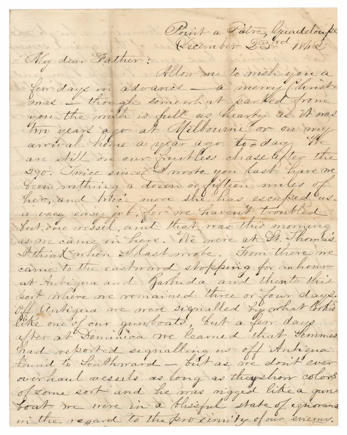 A fascinating document that relates to a particularly disastrous moment of the First Samoan Civil War, which relates to the conclusion of a prolonged standoff between the United States (supporters of Mata’afa Iosefo) and the German Empire (backers of the Tupua Tamasese dynasty) over control of the Samoan Islands. The standoff ended when the 1889 Apia cyclone of March 15 and 16 destroyed all six warships in the harbor — three U.S. Navy warships (the sloop-of-war USS Vandalia, the screw steamer USS Trenton, and the gunboat USS Nipsic) and three German warships (the gunboats SMS Adler and SMS Eber and the corvette SMS Olga). The lone vessel to escape the harbor and survive the storm was the mediating British cruiser HMS Calliope. Starting Bid $200