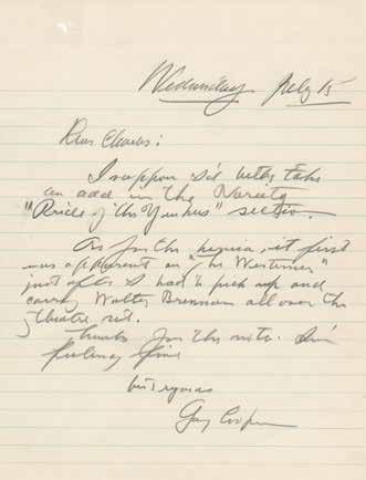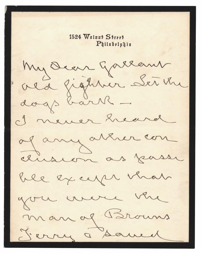 Garfield thanks a Boston composer for “the musical arrangements you so kindly sent”