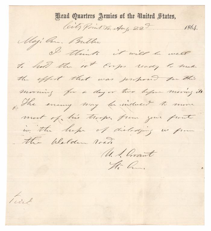16. U. S. Grant Civil War-Dated Autograph Letter