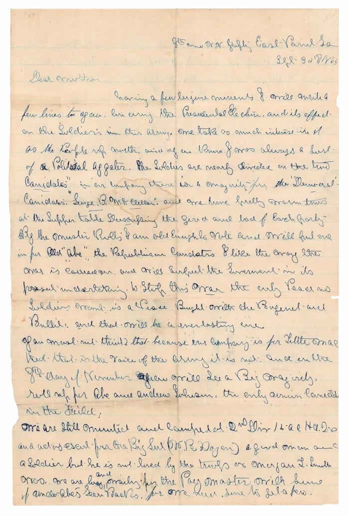 During the Civil War, President Abraham Lincoln struggled with the challenge of dealing with Union Army deserters. A compassionate leader, he generally showed leniency, understanding the pressures soldiers faced—in March of 1863, he proclaimed a general call of amnesty for the 125,000 Union men then missing from their units, absolving them from punishment in exchange for their return. However, he also recognized the need to maintain discipline, and desertion was considered a capital crime. In all, only 147 Union deserters were executed during the course of the war, and it seems that Williams of the Maryland Fourth was one of these unlucky few. By year’s end, the war-weary Lincoln had largely ended the practice; when commuting a death sentence in January 1864, Lincoln explained that his decision was made ‘not on any merit in the case, but because I am trying to evade the butchering business lately.’ Starting Bid $1000