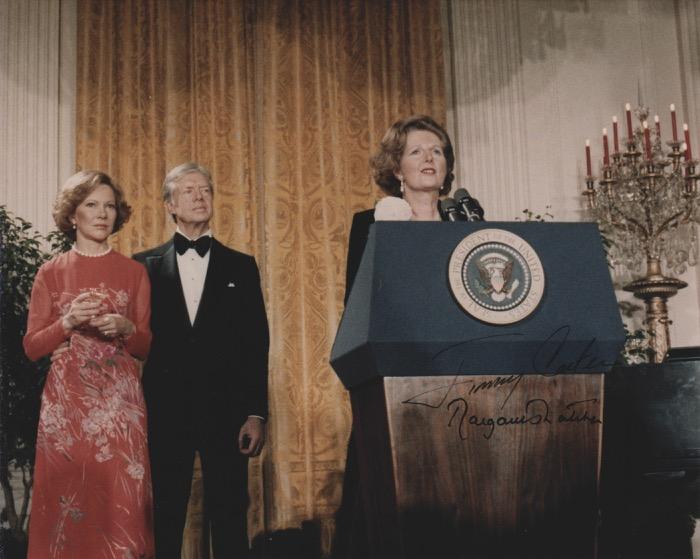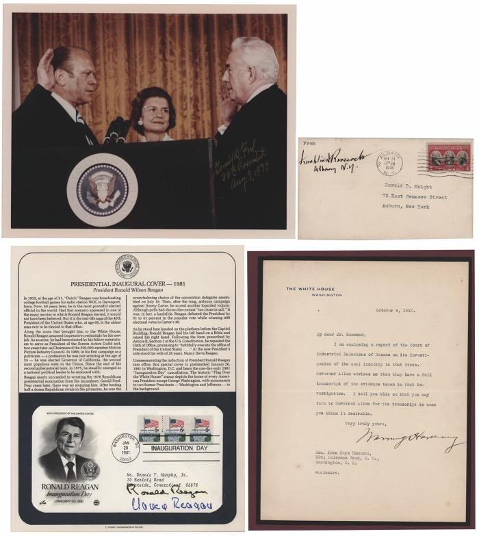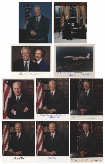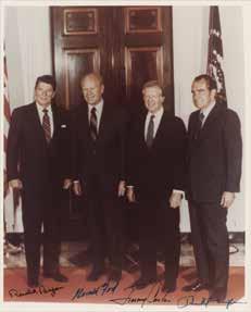 16. Four Presidents Signed Photograph - Reagan, Nixon, Carter, and Ford. Color glossy 8 x 10 photo of Presidents Nixon through Reagan gathered at the White House prior to departing for Anwar Sadat’s funeral in 1981, signed in felt tip by Ronald Reagan, Gerald Ford, Jimmy Carter, and Richard Nixon. In fine condition. Starting Bid $200