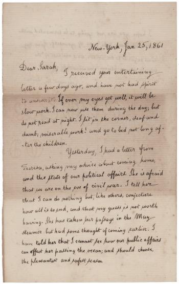 3. Abraham Lincoln Partial Autograph Letter as President to Secretary of War Edwin M. Stanton (October 31, 1863). Civil War-dated partial autograph letter from President Abraham Lincoln, unsigned, one page, 4.75 x 6.75, Executive Mansion letterhead, October 31, 1863. Addressed to Secretary of War Edwin M. Stanton, the handwritten letter reads: “The bearer of this, L. B. Goggin, resides in Kentucky and is well vouched as an unconditional Union man. He also is brother of W. L. Goggin of Va. whom I know, and whose honor I would take to any extent he would pledge it. Please see him and allow him to bring away from Va. a widowed daughter, whom, he expects to meet at City Point.” Impressively cloth-matted and framed with a large print of Alexander Gardner’s iconic ‘Gettysburg’ portrait of President Lincoln to an overall size of 17 x 31.75. In fine condition. William L. Goggin, a Whig politician and lawyer from Virginia, had served in Congress with Lincoln from 1847 to 1849. During the war, Goggin became captain of Home Guards for the Confederate Army. Starting Bid $500