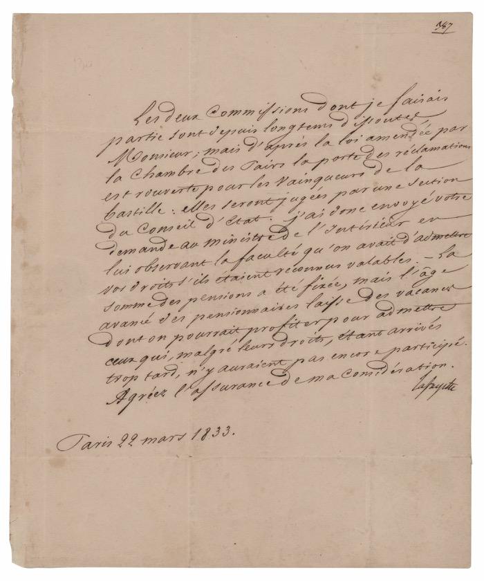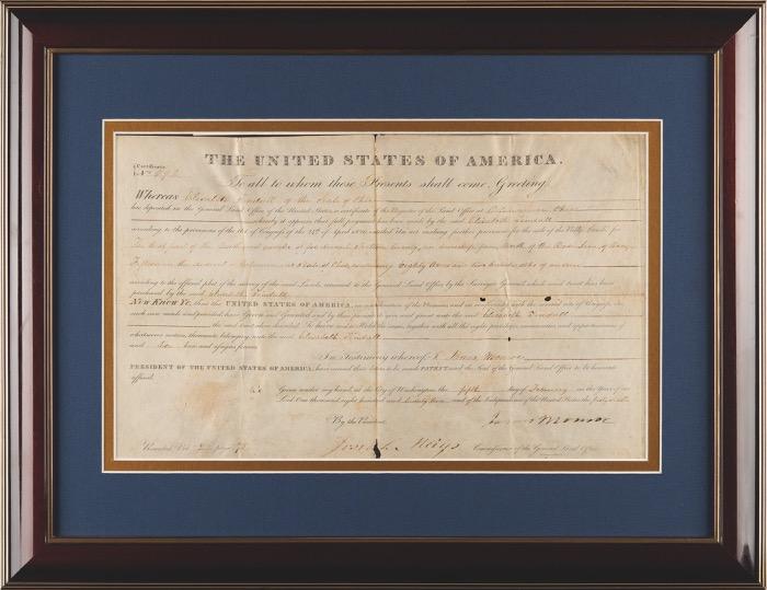 This type of document was generally left blank and signed in advance by the president and secretary of state, then sent to ports and harbors to be filled out as needed. This pass must have been signed quite early in Jefferson’s term—Levi Lincoln, appointed as attorney general, also served as acting secretary of state from March 5 through May 1, 1801. James Madison had been officially named to the position, but did not arrive in Washington until May due to illness. A scarce and highly desirable presidential document—this is just the third such Thomas Jefferson–Levi Lincoln example we have encountered. Starting Bid $300