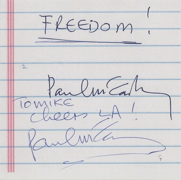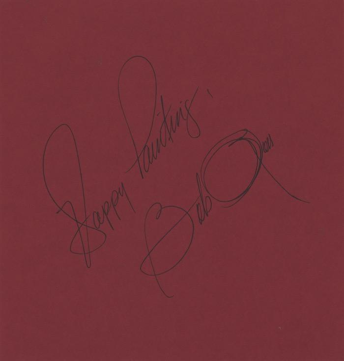 SALE OF AUTOGRAPHED COLLECTIBLES: AS REQUIRED BY LAW, A DEALER WHO SELLS TO A CONSUMER ANY COLLECTIBLE DESCRIBED AS BEING AUTOGRAPHED MUST PROVIDE A WRITTEN EXPRESS WARRANTY AT THE TIME OF SALE. THIS DEALER MAY BE SURETY BONDED OR OTHERWISE INSURED TO ENSURE THE AUTHENTICITY OF ANY AUTOGRAPHED COLLECTIBLE SOLD BY THIS DEALER.