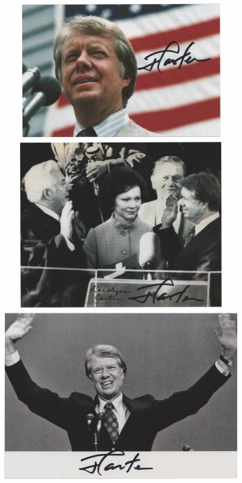 15. Five Presidents Signed PhotographBarack Obama, George W. Bush, George Bush, Bill Clinton, and Jimmy Carter. Soughtafter color satin-finish 10 x 8 photo of President George W. Bush standing next to his predecessor, President-elect Barack Obama, in the White House’s Oval Office on January 7, 2009, with former American Presidents George Bush, Bill Clinton, and Jimmy Carter also in attendance, signed in the lower border in black felt tip by all five pictured U.S. presidents. In very fine condition.