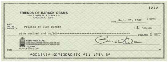 Rare ‘Friends of Barack Obama’ check donating to the campaign committee of a fellow Illinois senator