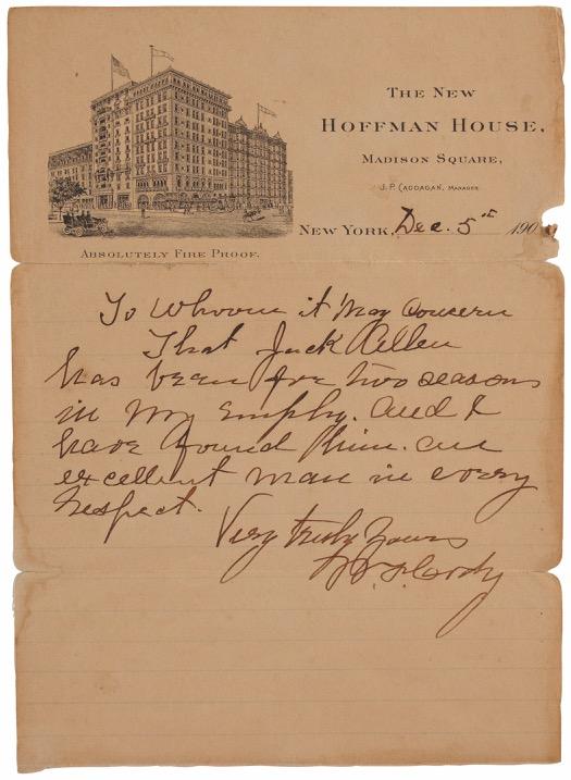 For Bidders who do not remove purchased property from RR Auction’s premises, RR Auction, in its sole discretion and solely as a service and accommodation to Bidders, may arrange to have purchased lots packed, insured and forwarded at the sole request, expense, and risk of Bidder.