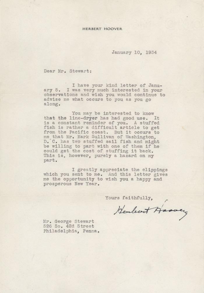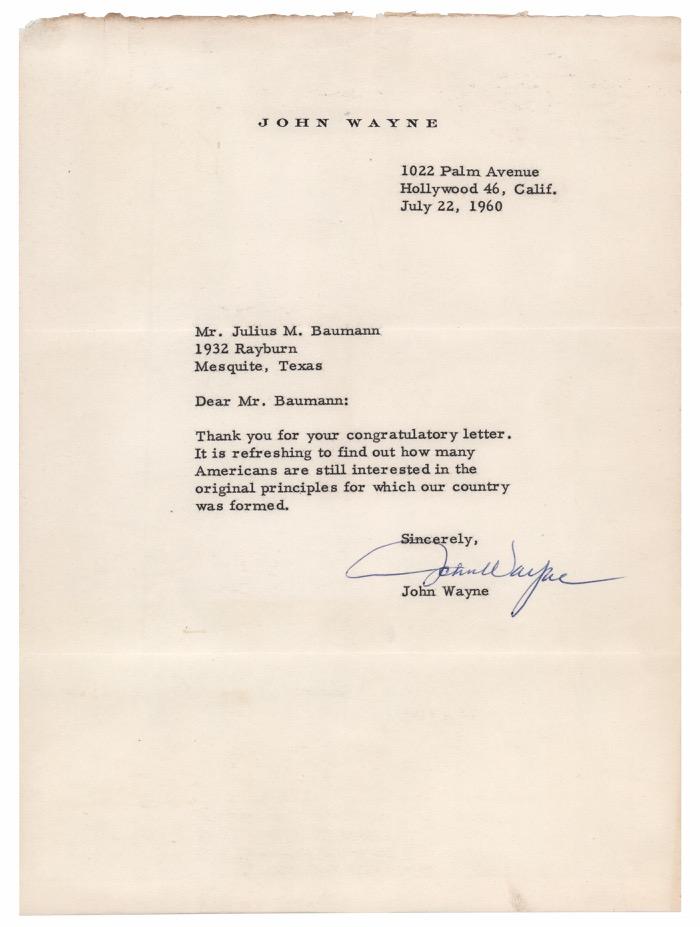 ever had his name favorably mentioned in the newspapers and I see no reason for my getting particularly excited about it except to say what I have already said, and mean, that I want no part of any political job. Since no man – at least since Washington’s day – has ever gone to high political office except with his own consent, indeed with his own connivance, I feel perfectly secure in my position and I do not consider it either approproate or in good taste that I say another word about it. If you ever find any statement anywhere that purports to quote me as saying that I want a political office, and I mean now or in the future, then you send it on to me and remind me of this statement.” Starting Bid $1000